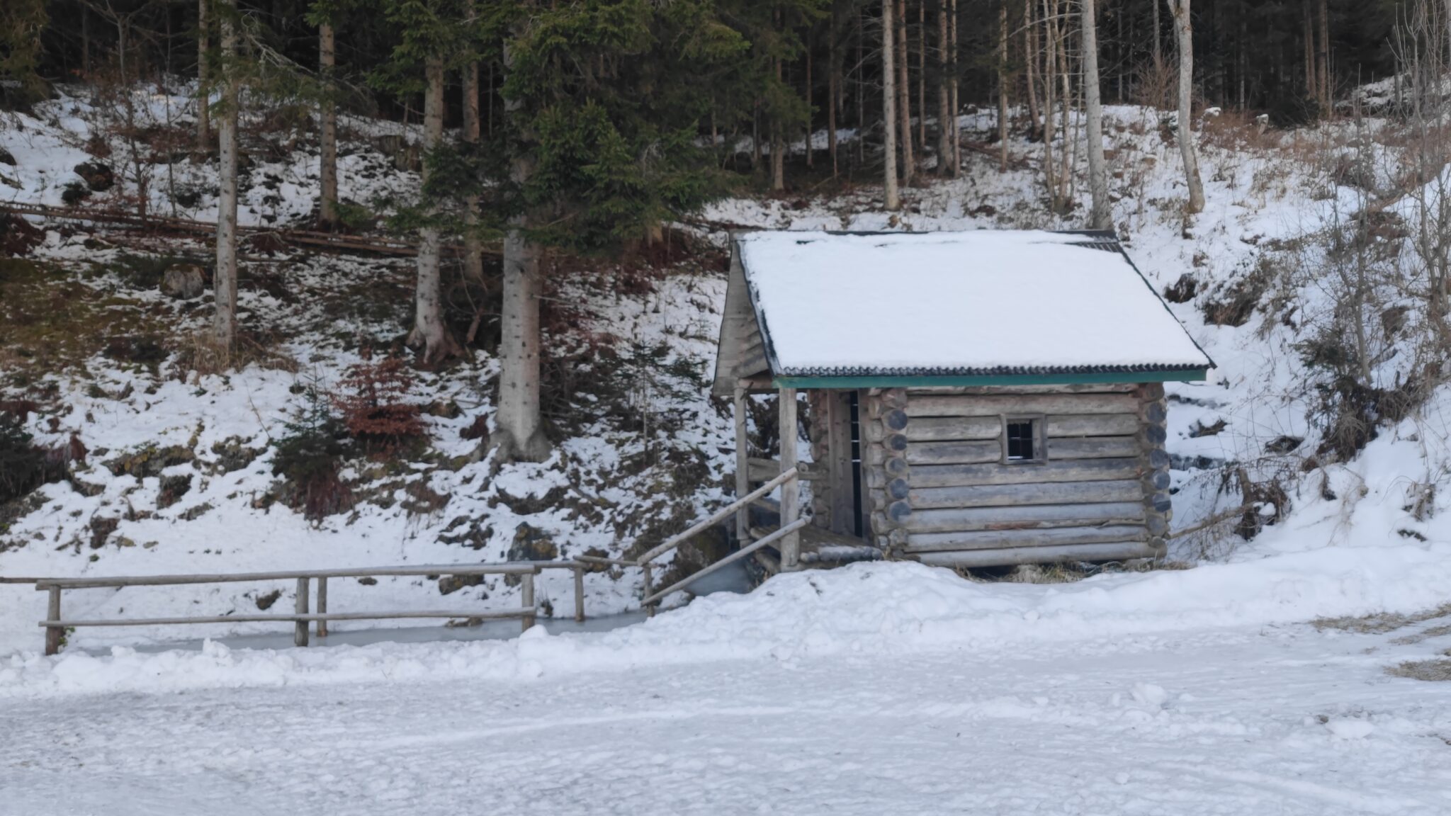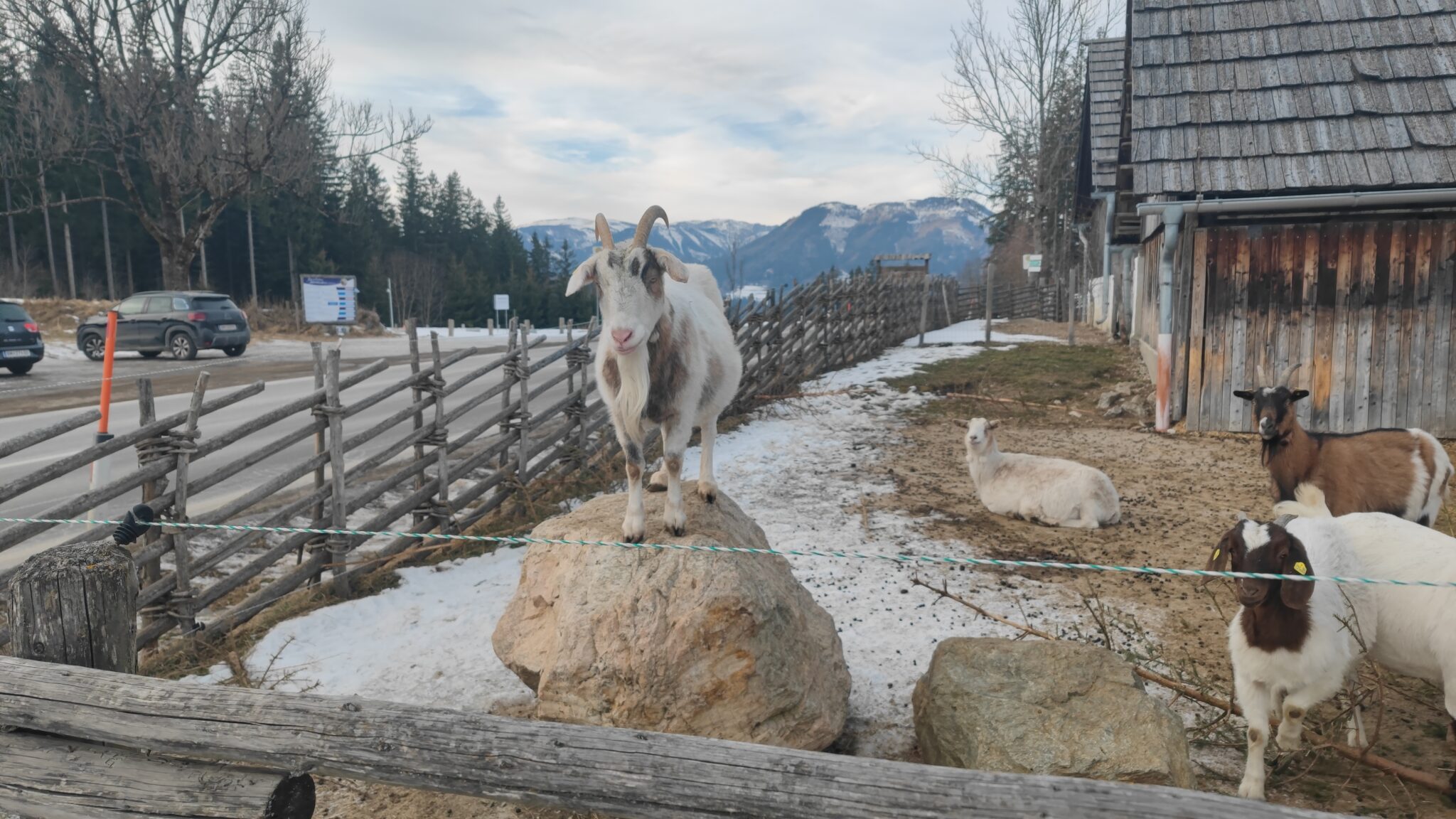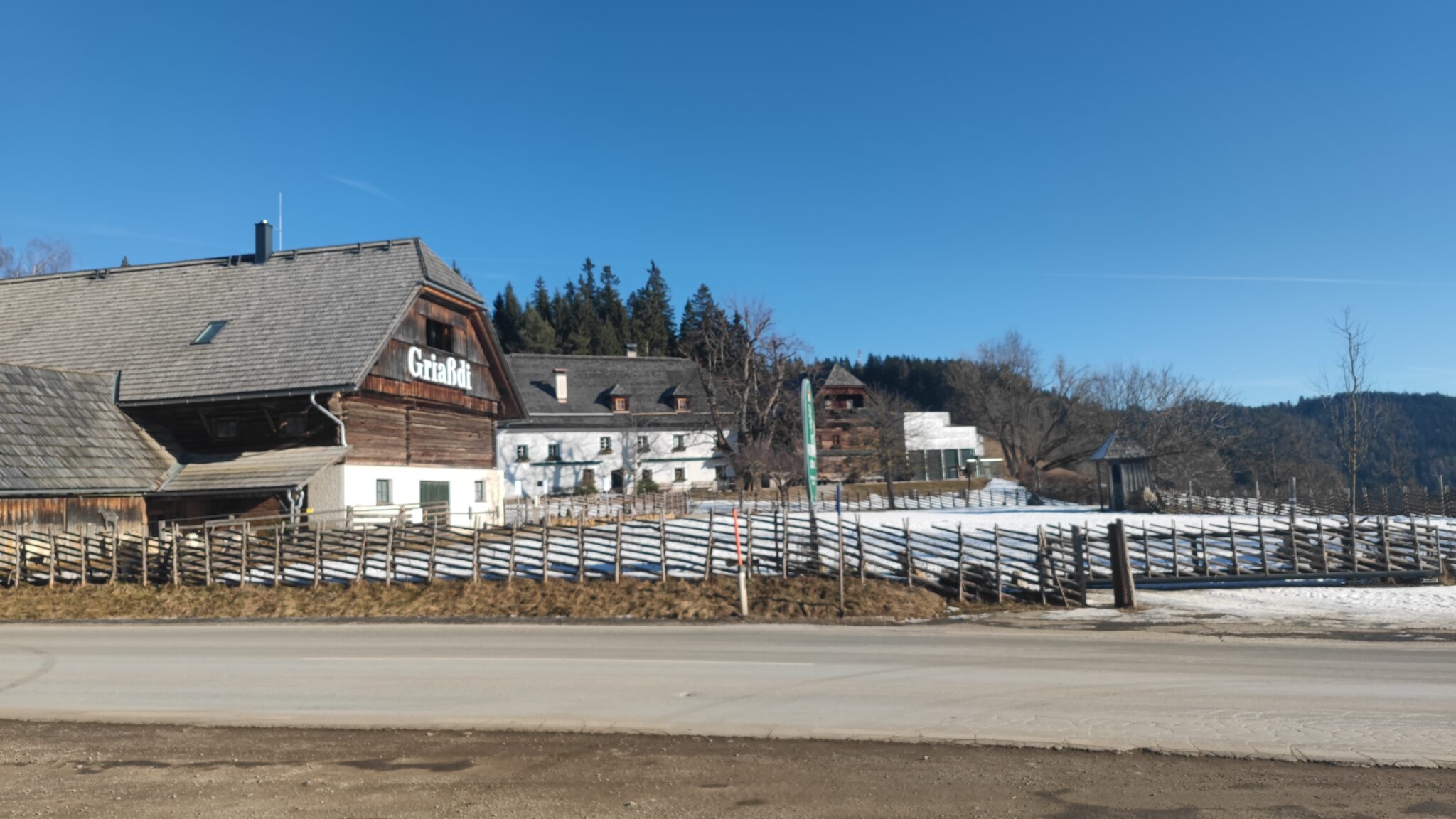 Wenig später erreiche ich den Herrbauer. Im Winter hat er leider geschlossen, also geht es für mich weiter zum Himmelreichbauer, der erfreulicherweise auch in der kalten Jahreszeit geöffnet hat. Ein idealer Platz für eine Jause oder ein Getränk, bevor der letzte Teil der Wanderung ansteht. Davor gäbe es noch die Möglichkeit, dem kleinsten Wildtiermuseum Österreichs einen Besuch abzustatten. Da es hier allerdings leicht bergauf geht und der Weg komplett vereist war, habe ich das diesmal zur Sicherheit ausgelassen. Das steht definitiv für eine wärmere Jahreszeit auf der Liste.
