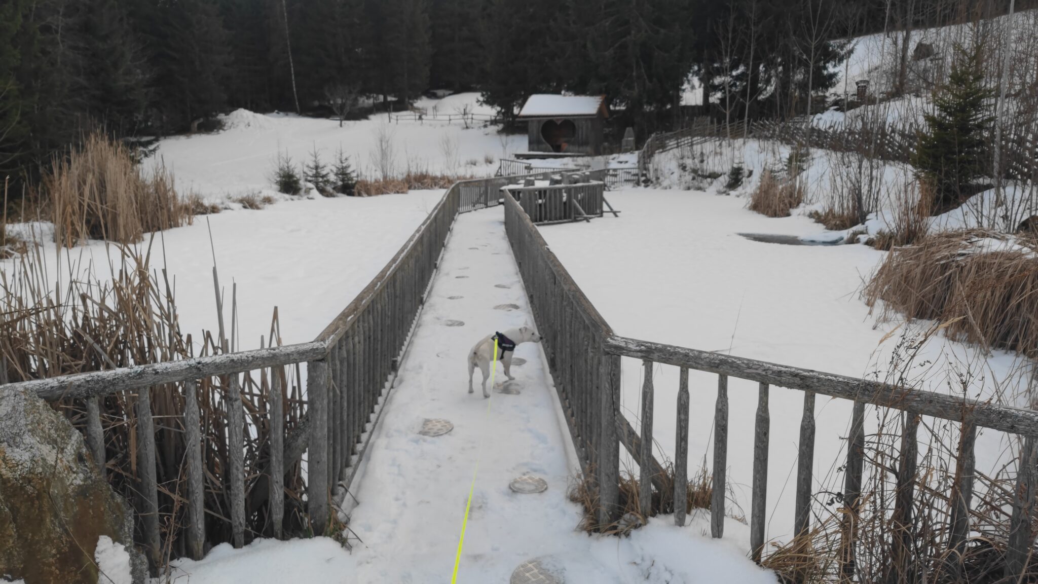 Ich war im Winter dort unterwegs, gemeinsam mit Coke, und schon nach den ersten Minuten war klar, dass das heute kein sportlicher Pflichttermin wird, sondern ein Tag zum Durchatmen. Schnee auf den Wiesen, ruhige Waldstücke und immer wieder dieses Gefühl, dass Wasser hier eine große Rolle spielt, selbst wenn vieles zugefroren ist. Und ja, ich war ohne Grödel unterwegs. Es ist gegangen, aber mit Grödel wäre es an ein paar Stellen deutlich angenehmer gewesen.